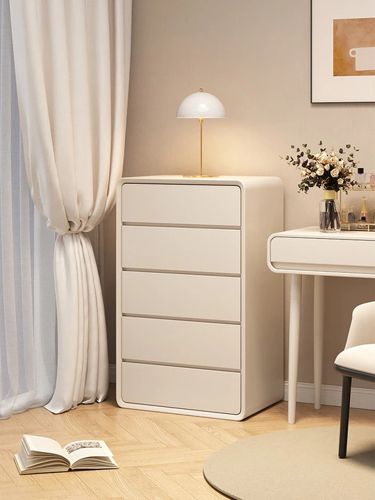 Cream Finish Solid Wood Wall-Mounted Five-Drawer Storage Cabinet for Stylish Room Organization