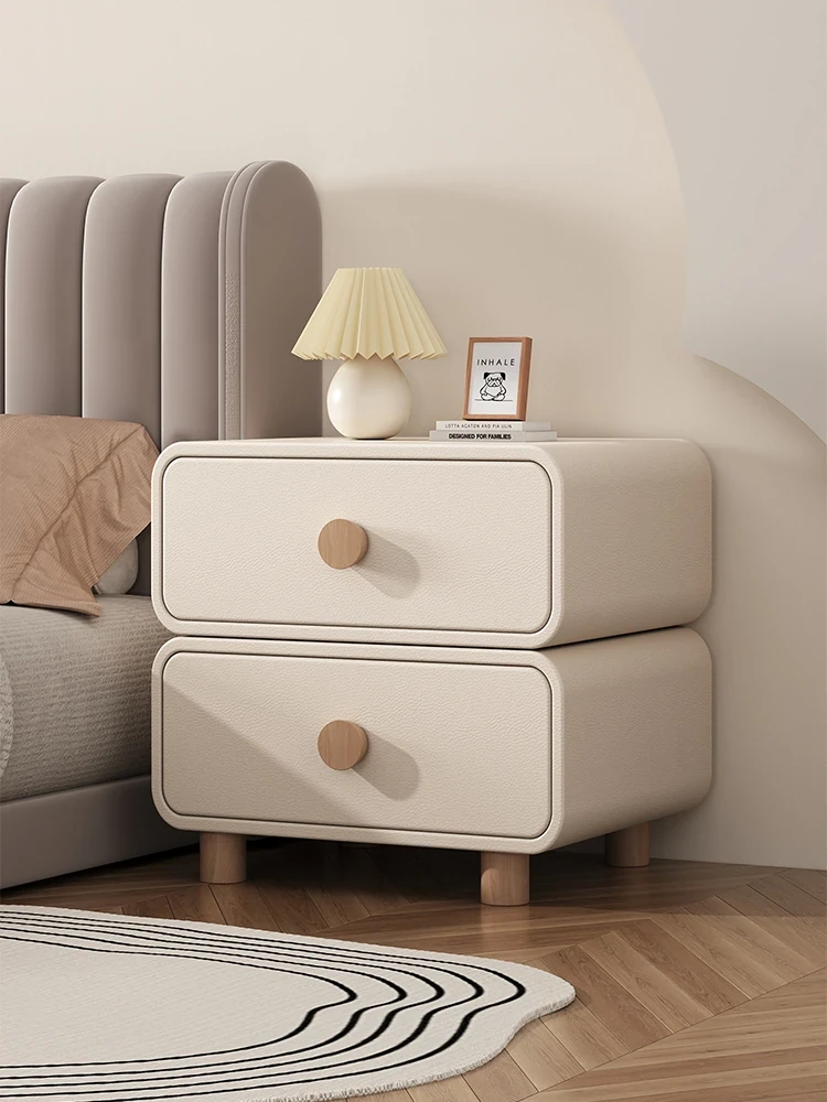 Dreamy Cream Solid Wood Nightstand - Modern Minimalist Small Storage Cabinet for Bedrooms, Stylish and Functional Design for Your Home