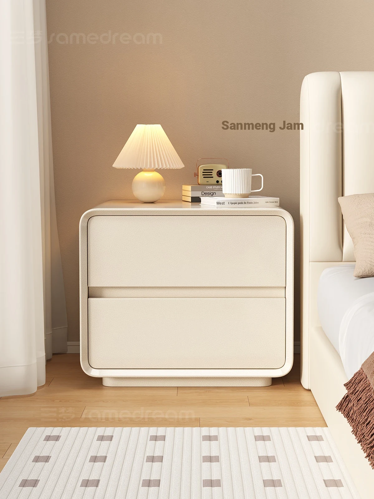"Sangmeng Solid Wood Nightstand - Modern Minimalist Design 2024 New Arrival, Elegant & Luxurious Small Chest for Bedroom in Creamy Aesthetic"
