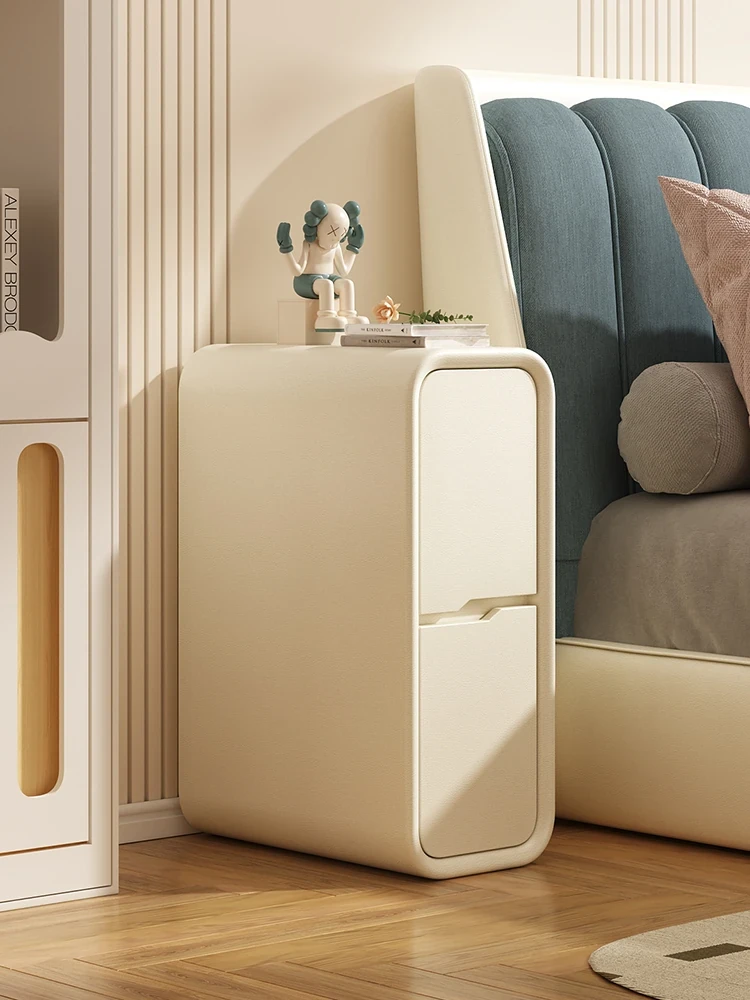Solid Wood Ultra-Narrow Cream Mini Nightstand – Elegant Design for Space-Saving Storage in Your Bedroom