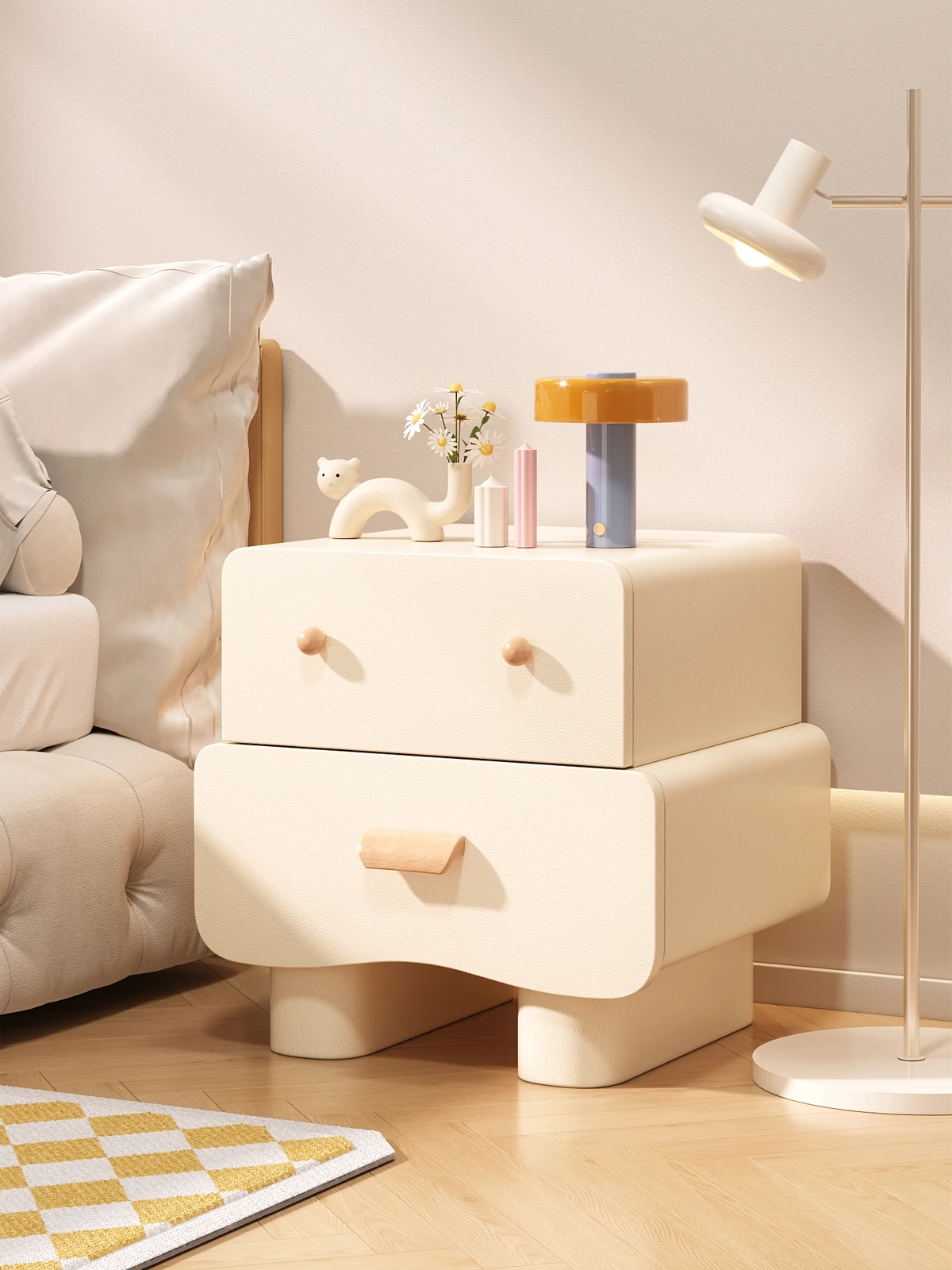 Dreamy Cream Wooden Nightstand - 2024 New Minimalist Modern Design for Bedroom Storage Solutions, Compact Side Cabinet for Your Home