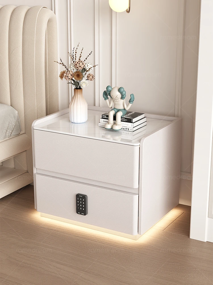 Introducing the 2025 Dream Smart Nightstand: A Modern Minimalist Solid Wood Design with Built-in Lighting. This Multi-Functional, Compact Cabinet Features Secure Locking, Perfect for Your Bedroom Needs!