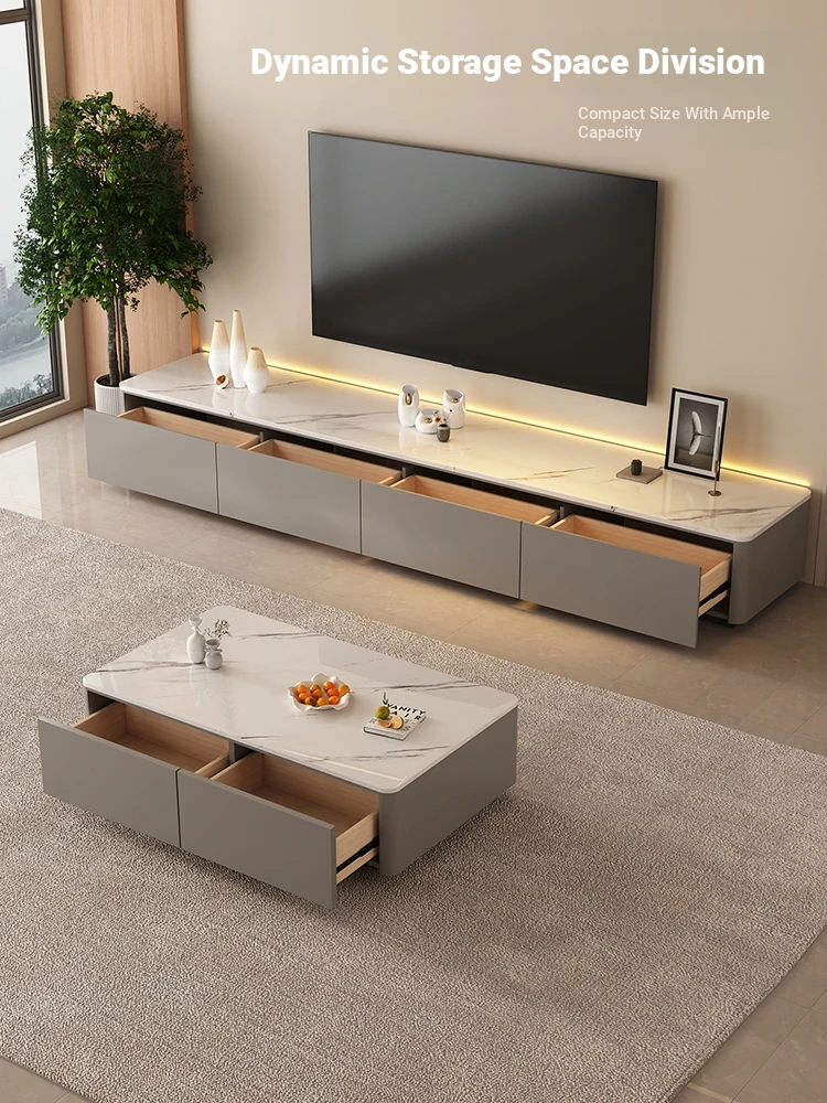 "2024 New Modern Minimalist Rock Panel TV Stand with Coffee Table - Chic Design for Small Spaces, Perfect for Elevating Your Living Room Aesthetic"