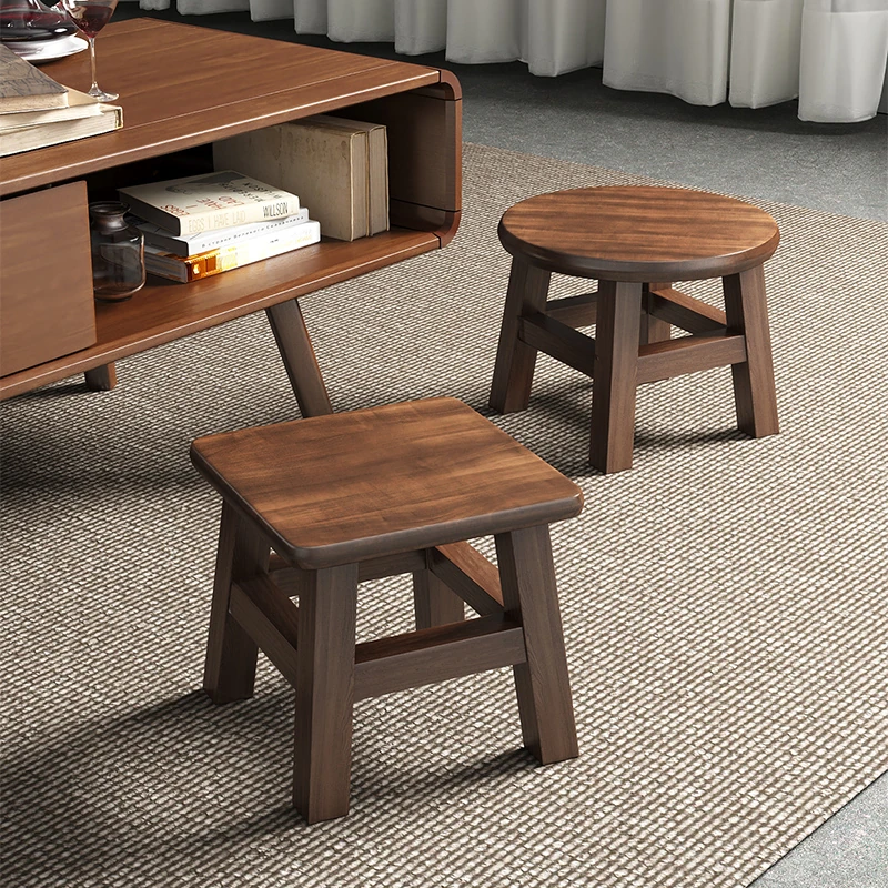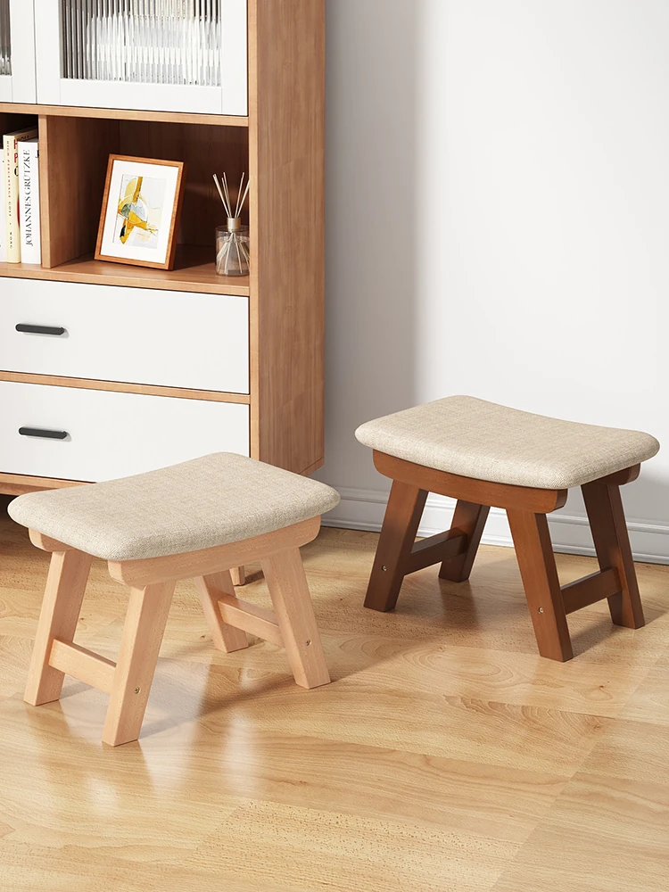 三夢の木製スツール - 家庭用靴替え用、布製のおしゃれなロースツール。リビングやソファ、コーヒーテーブルにぴったりのシンプルでモダンなデザイン!